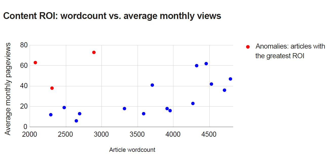 With the anomalies removed, we established that a 3,000 to 4,500-word article is likely to produce over 50% more organic users, long-term, than 2,000 to 3,000-word article.